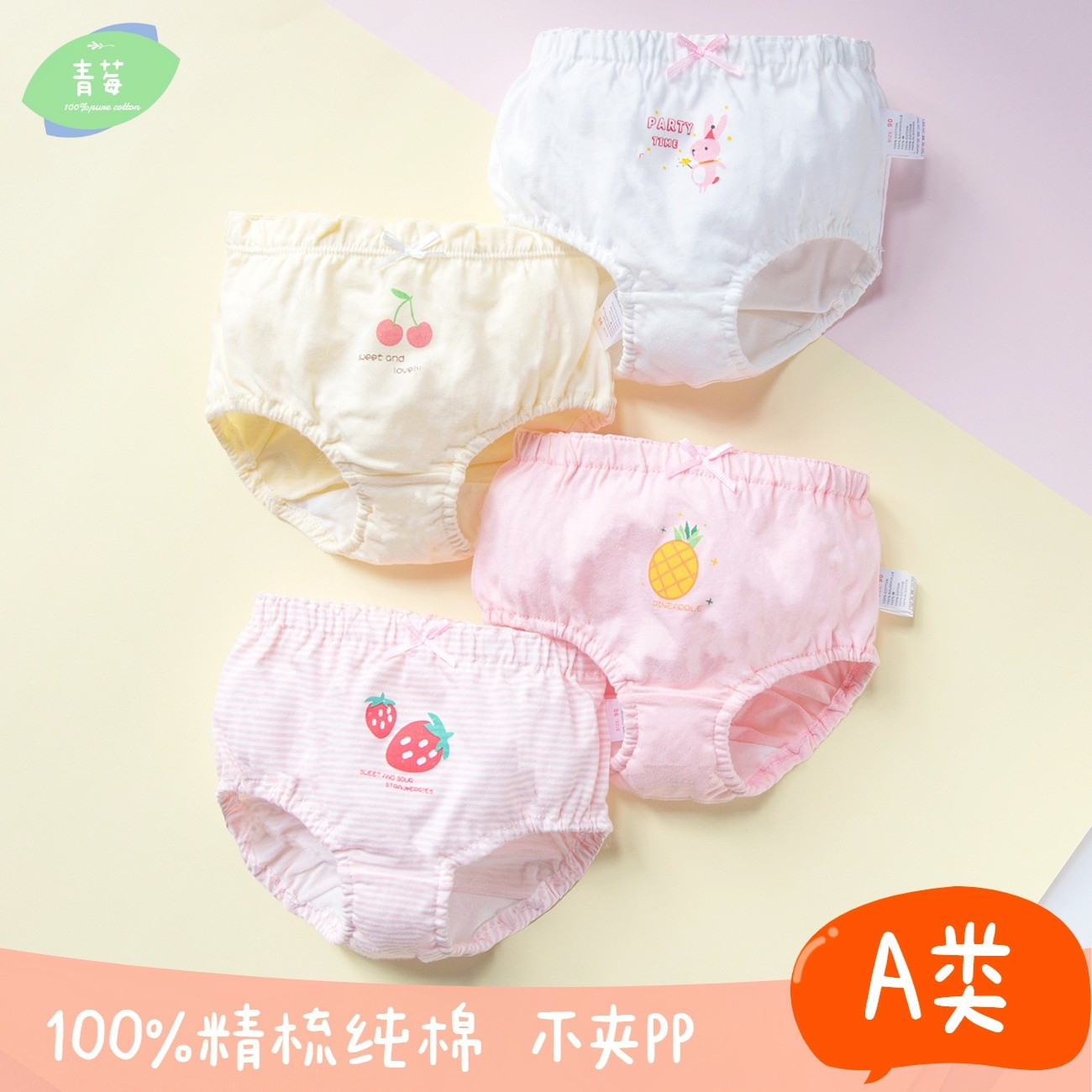 4-pack Class A pure cotton Girls ' panties Baby Baby Briefs 1-3-5 years old lace lace children's bread pants