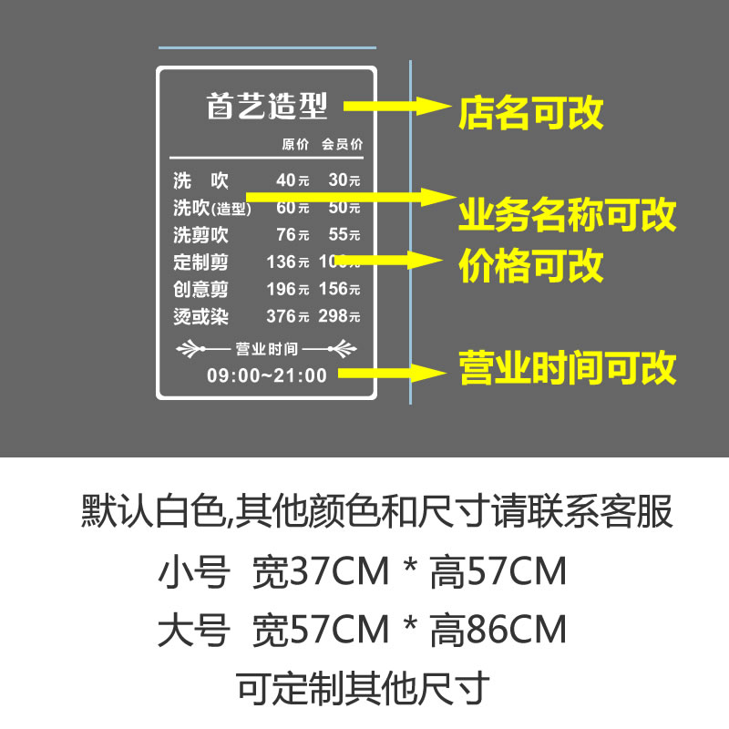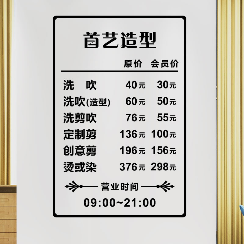 Customizable price list hairdressing barber shop creative hollow glass door stickers window decoration wall stickers self-adhesive