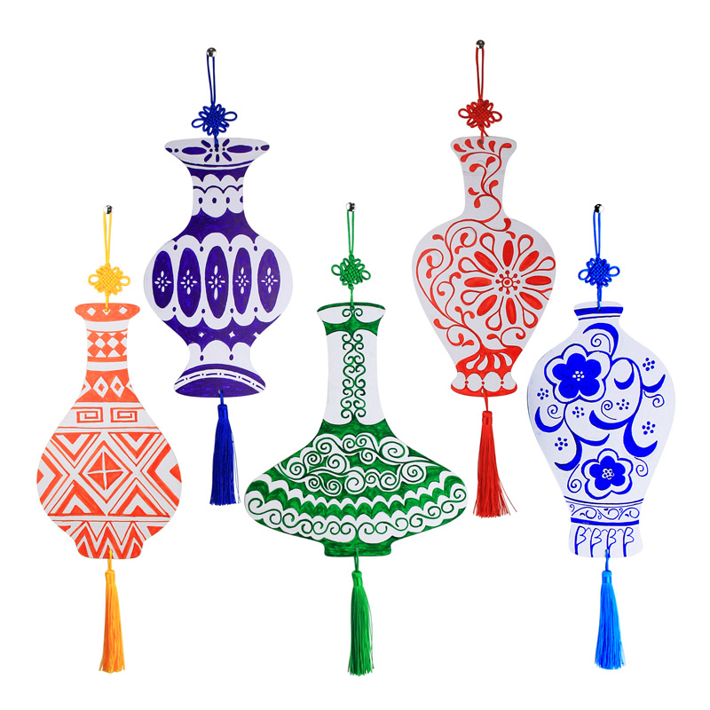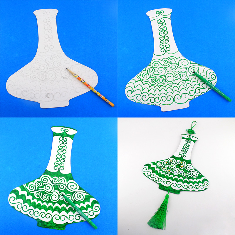 Blue and white porcelain kindergarten handmade DIY white mold coloring cardboard vase children's creative art painted graffiti bottle