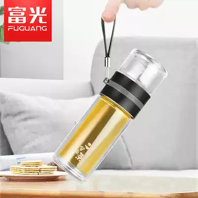 Fuuang glass two-point tea maker double-layer tea cup creative with lid retro portable leak-proof filter gift box