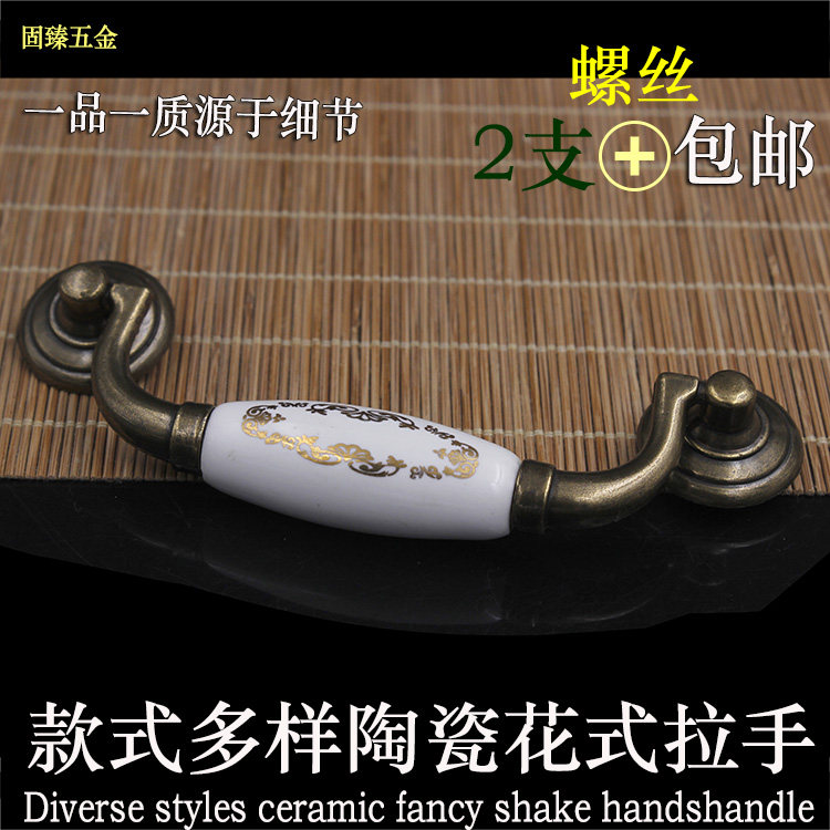 Qinggu bronze ceramic handle European style open sheet crack pull handle Tian Yuan overall cabinet handle furniture with small handle
