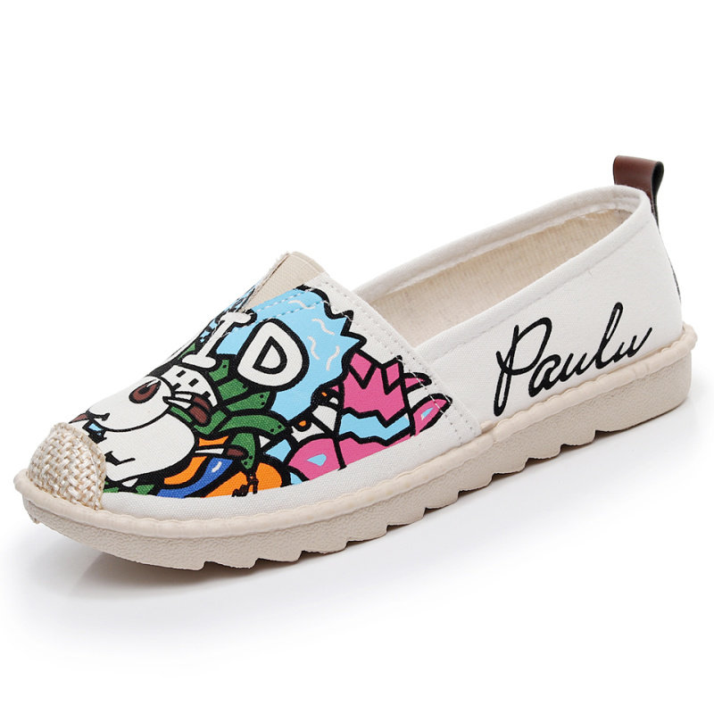 Summer breathable canvas shoes old Beijing women's shoes flat bottom all-match casual shoes slip-on fisherman low top single shoes cloth shoes