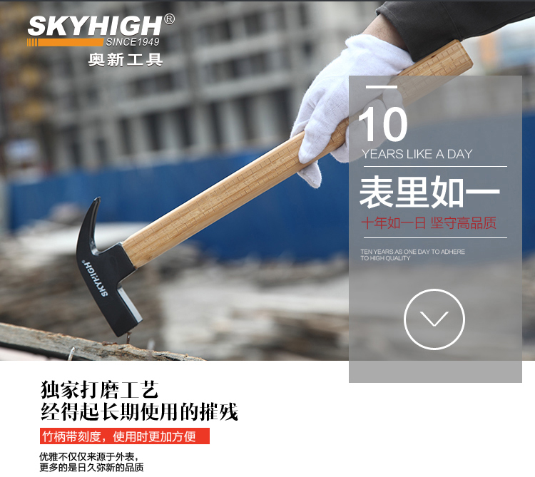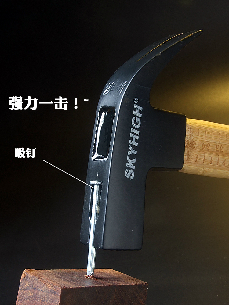 National Aoxin tools Black plastic high carbon steel bamboo handle square head woodworking sheep horn hammer Iron hammer hammer nail hammer
