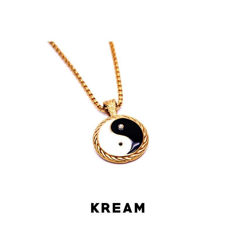 KREAM Gai with European and American popular titanium steel plated with K gold yin and yang gossip tai chi necklace necklace
