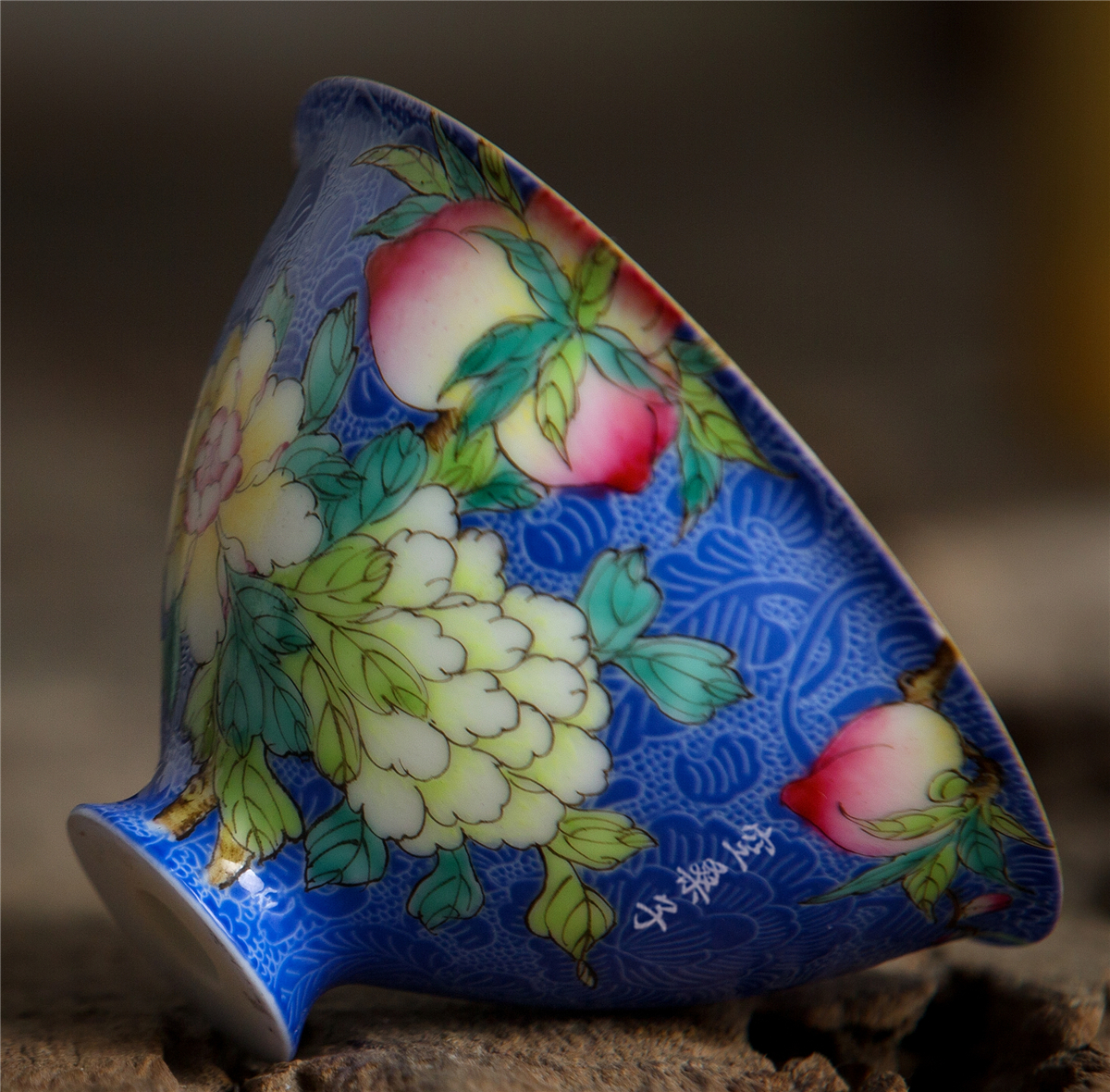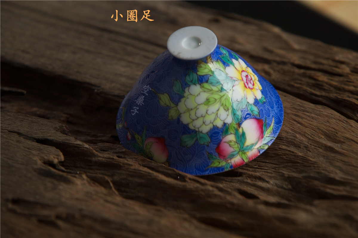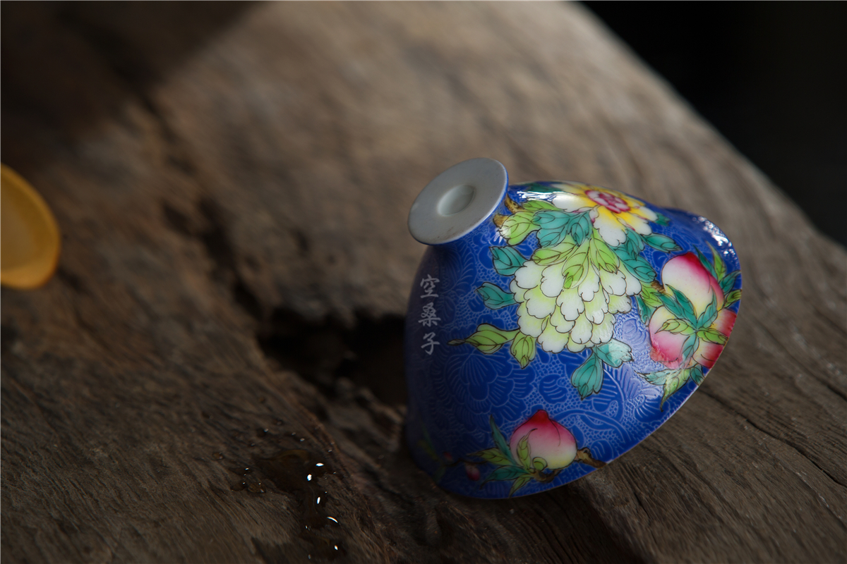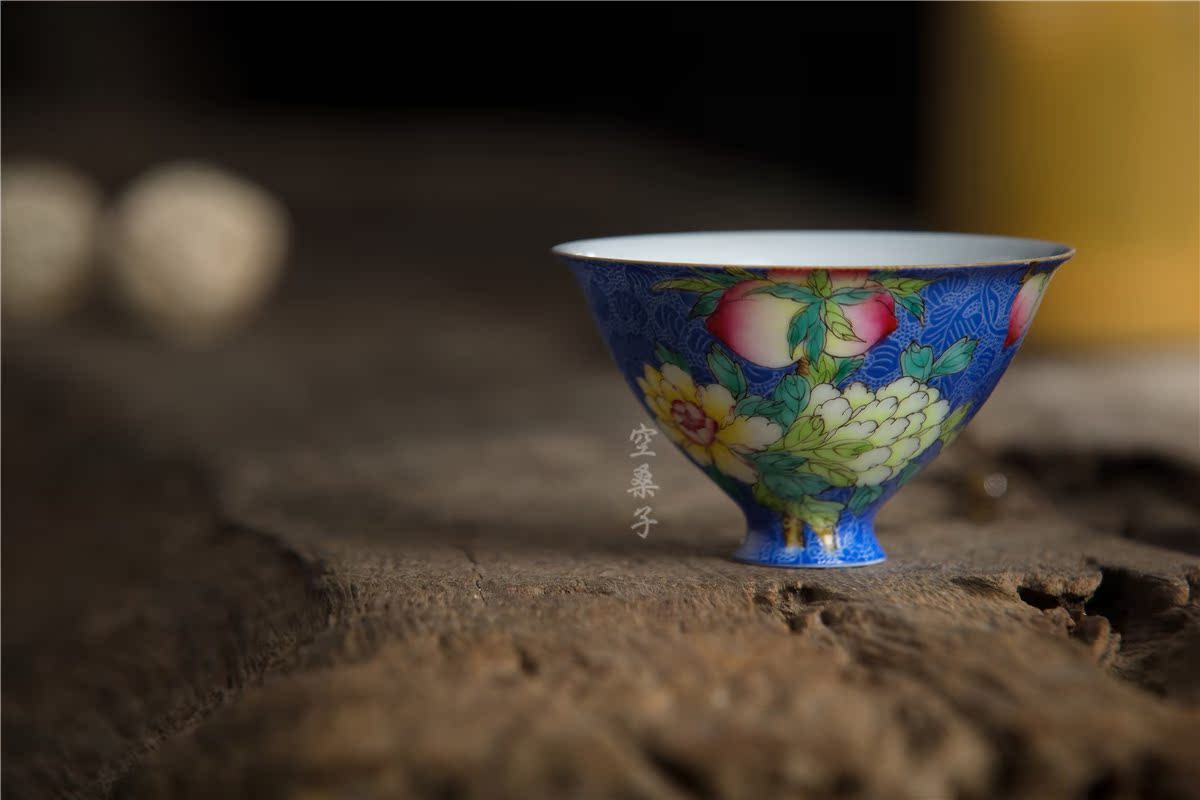 Jingdezhen empty mulberry tea set Pastel color pickle flower hat cup Blue glaze teacup Ceramic household Kung Fu tea set thin tire