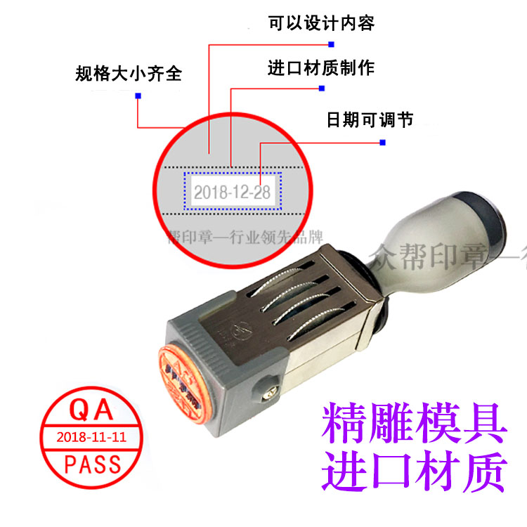 Adjustable date seal QC IQC FQC IPQC QA PASS Inspector qualified with year, month and day time stamp