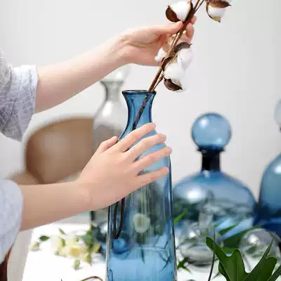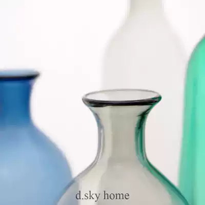 Diskai Nordic blue gray glass bottle with lid decoration vase Model room home creative decoration flower device