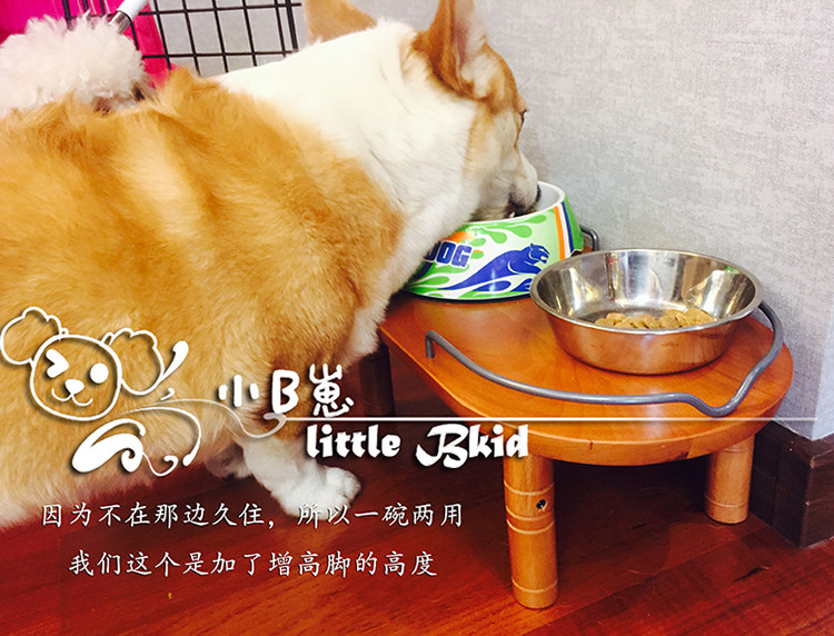 Little b cub Japan Richell Lichel solid wood cat and dog bowl rack corgi food bowl adjustable height pet dining table