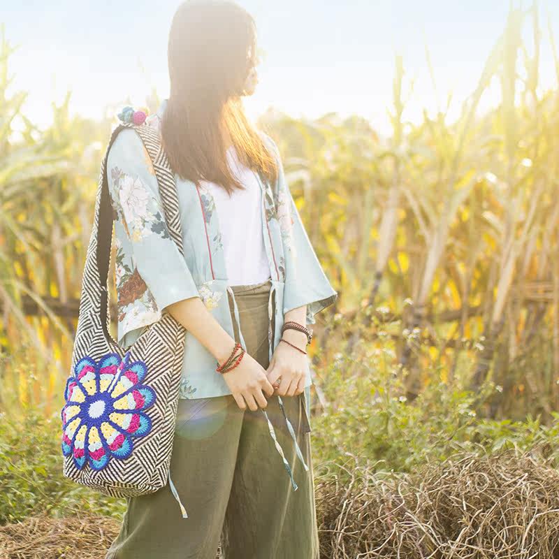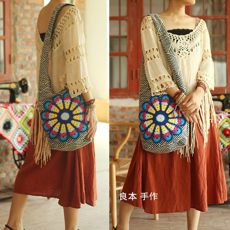 Pure handmade original bohemian hand hook ethnic style handmade messenger bag travel and leisure shoulder bag good quality
