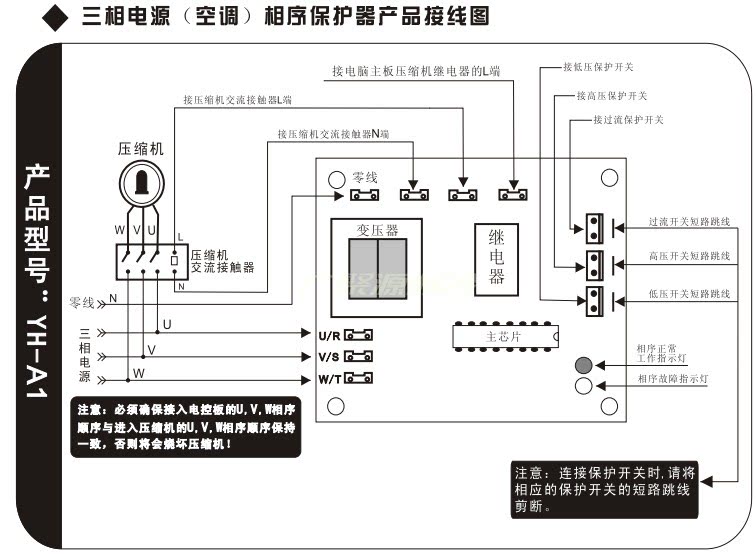 Air conditioning heat pump three-phase electric phase sequence protector phase sequence lack of phase wrong phase compressor protection board detection board 380v