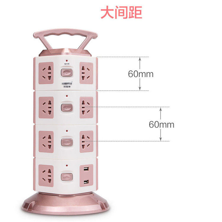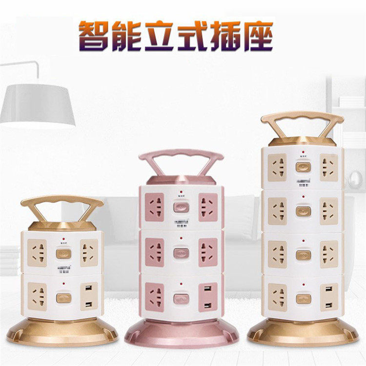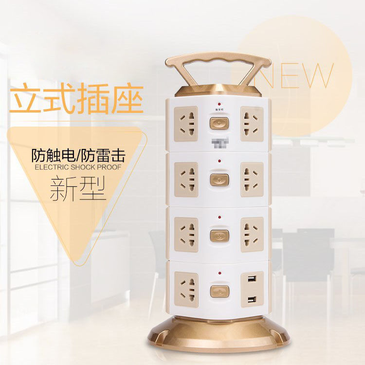 Cylindrical power plug upright five-hole switch socket four-layer power socket USB4 face plugboard optional