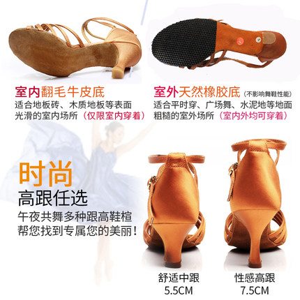 Latin dance shoes skin tone new women's high heeled fish mouth Latin square dance shoes