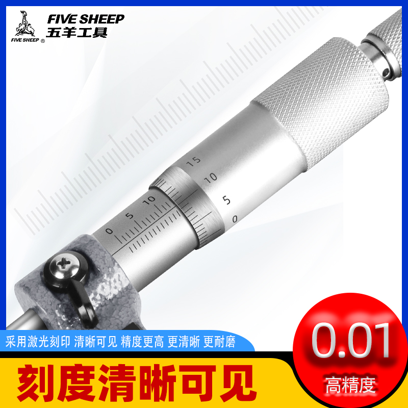 Five-sheep micrometer precision 0001 high-precision mechanical outer diameter micrometer 25mm thickness meter Thickness Gauge Screw Micrometer