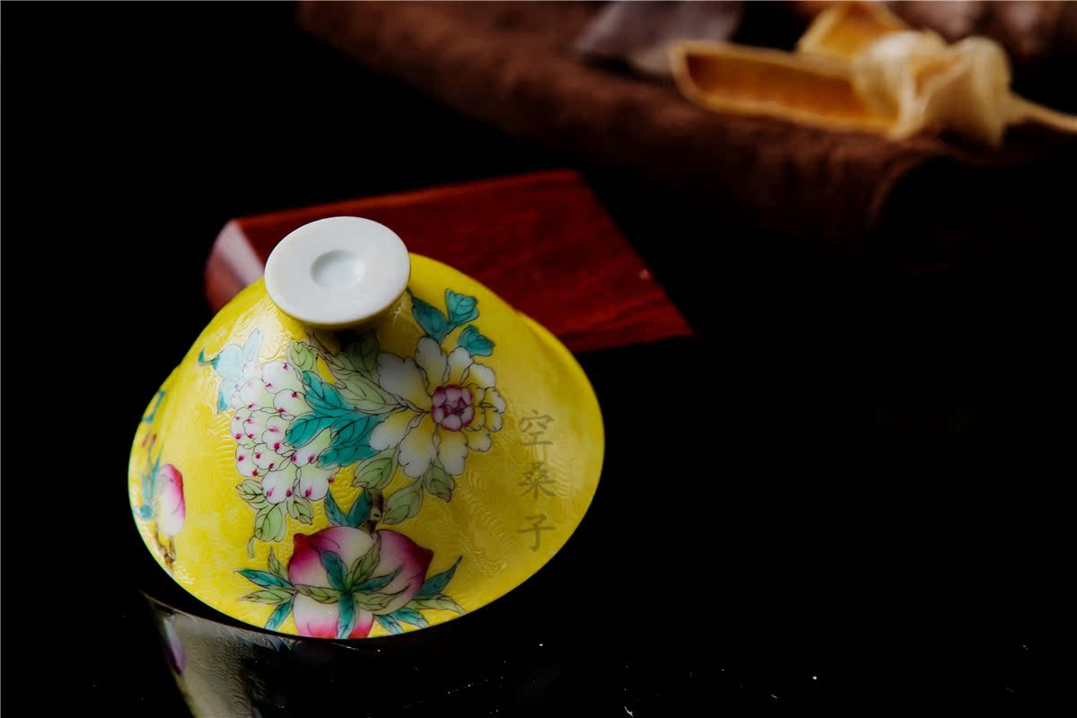 Jingdezhen empty mulberry tea set Pastel color pickle flower hat cup Yellow glaze teacup Ceramic household Kung Fu tea set thin tire