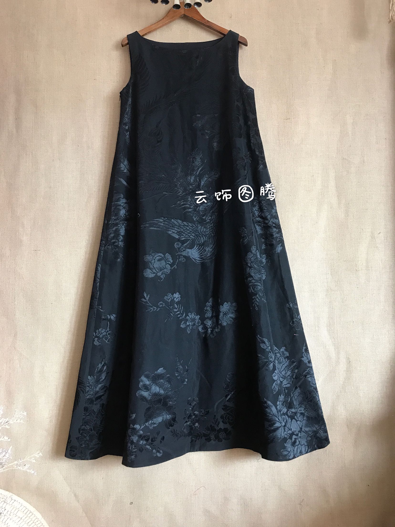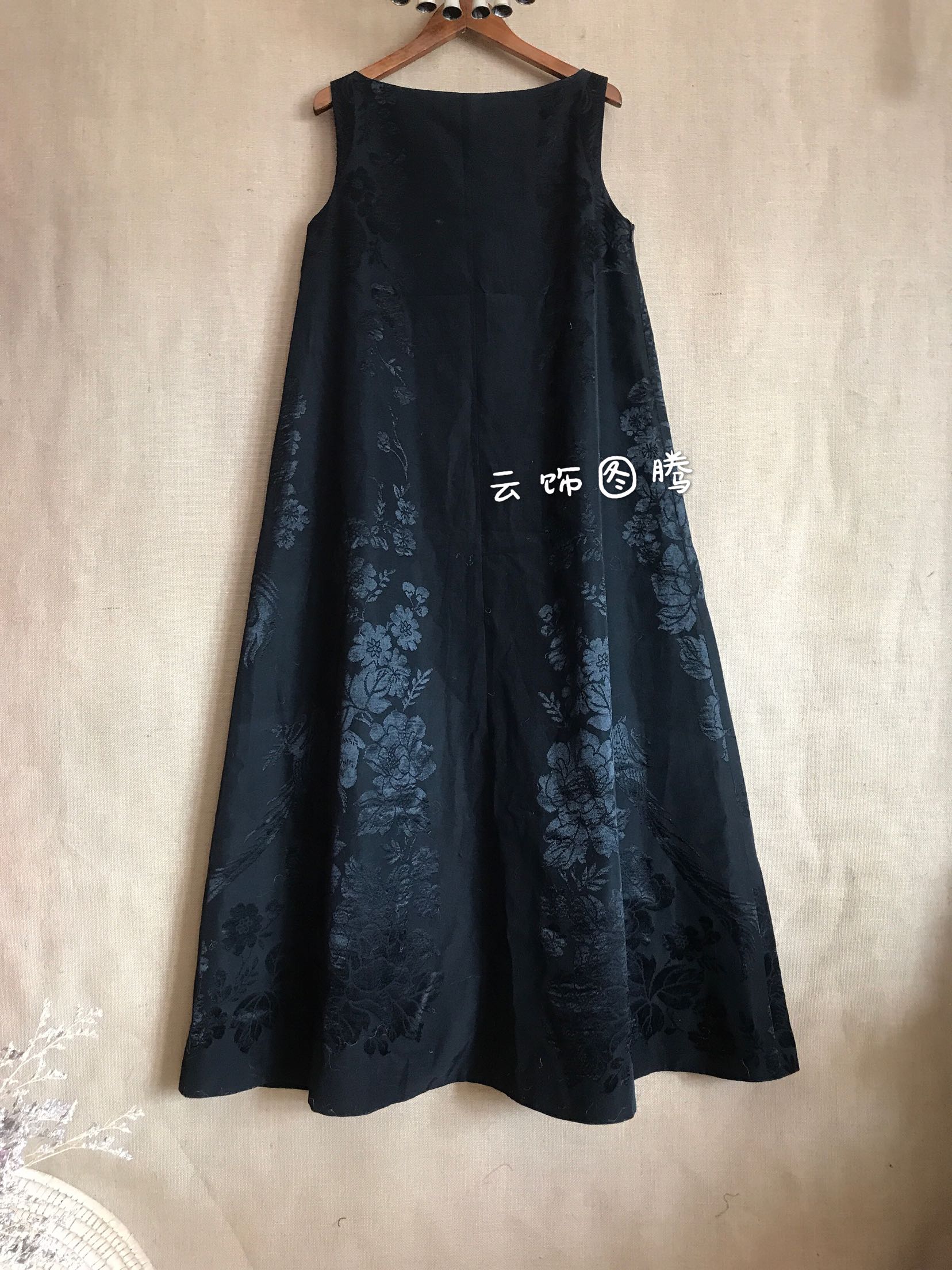 Cloud ornaments totem original design women's robes dress ethnic style old satin plain wild one-collar long skirt