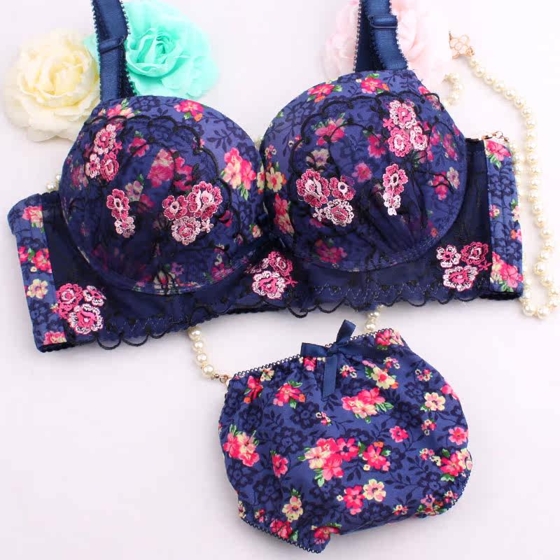 Japanese lingerie set girl sweet gather side retraction adjustment small chest underwear luxury embroidered ladies