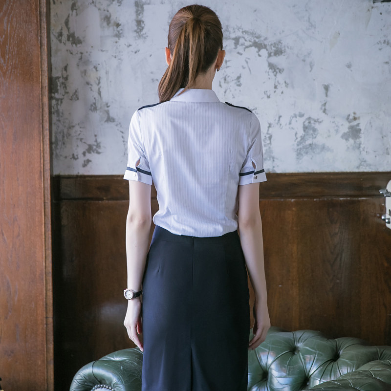 Special offer 69 summer stewardess work clothes female white-collar shirt short-sleeved temperament shirt front desk overalls suit skirt