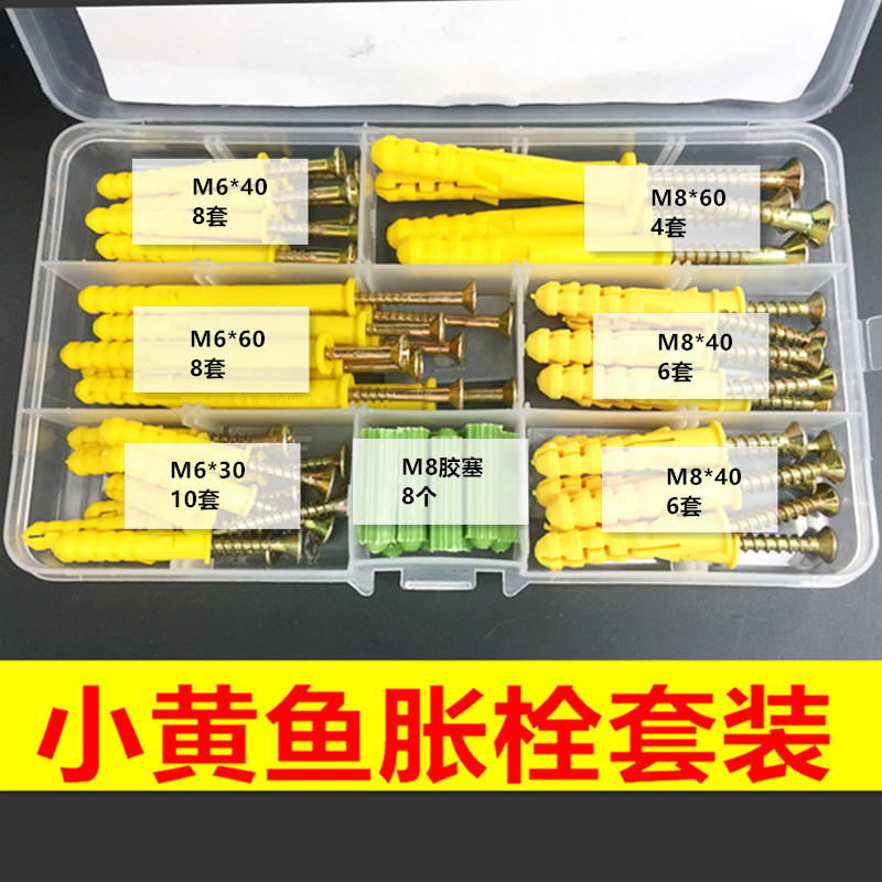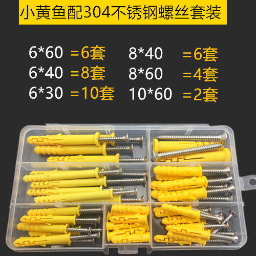 Home small yellow fish expansion screw suit small yellow fish plastic puffy tube with self tapping screw plastic expansion screw