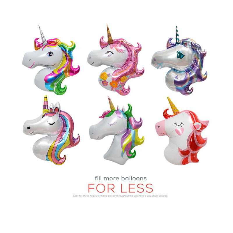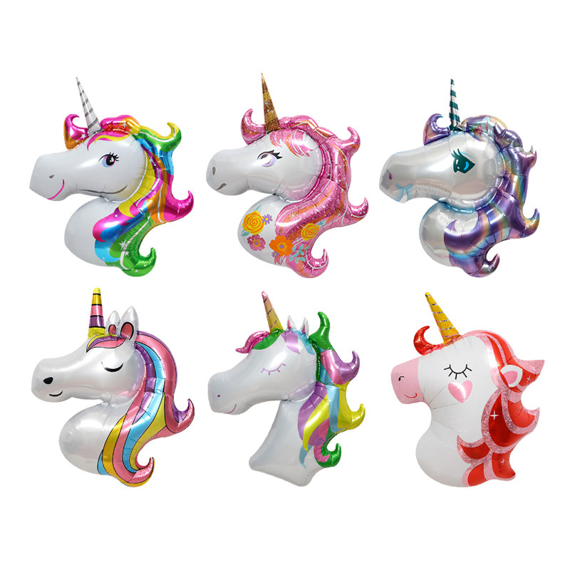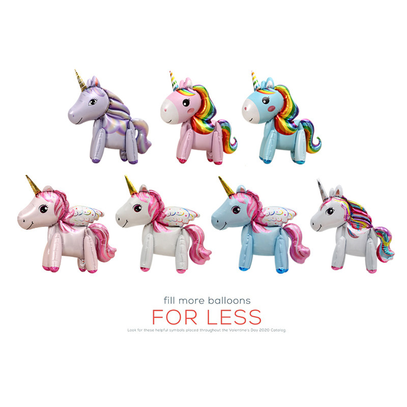 Party decoration balloon unicorn cartoon shape aluminum foil balloon 4D stereo color standing unicorn balloon