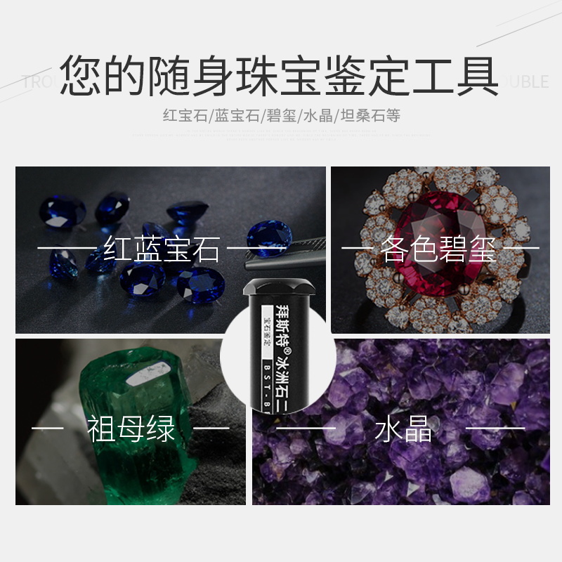 Bingzhoushi dichroic mirror identification red sapphire Amethyst Crystal Tourmaline Peridot Jade Jade portable tool