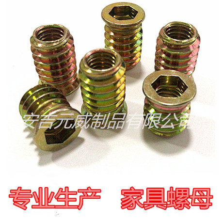 Furniture nut with inner hexagonal countersunk head iron inner and outer teeth embedded parts connector M6M8 inlaid Luo cap galvanized