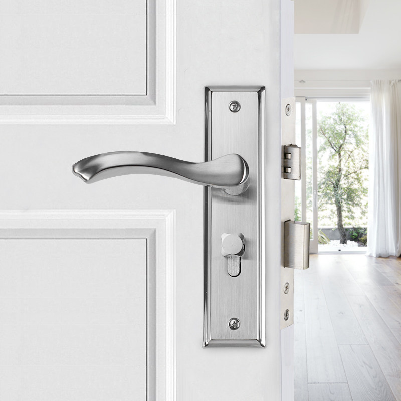 Large 50 steel wooden door solid wood door door lock indoor bedroom room Double tongue lock Home lock minimalist handle plate hand lock