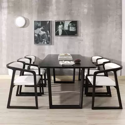 Dining table Modern simple Nordic solid wood small apartment household dining table rectangular black 1 4 meters dining table and chair combination