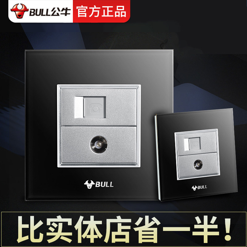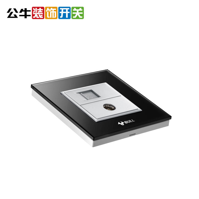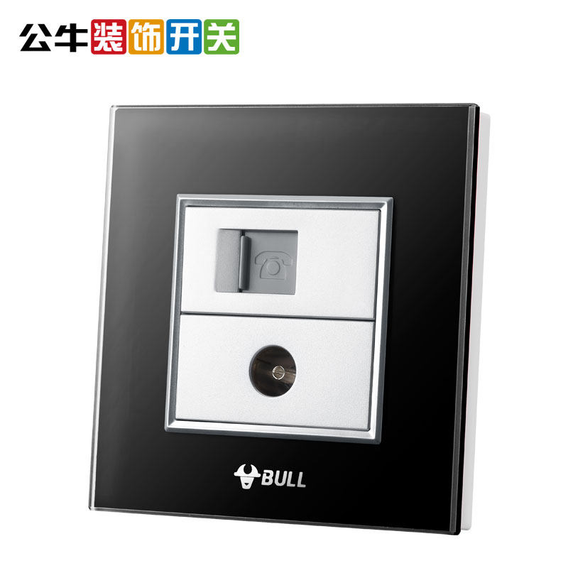 Bull decorative switch socket TV phone socket CCTV socket telephone plug wall carbon crystal black panel