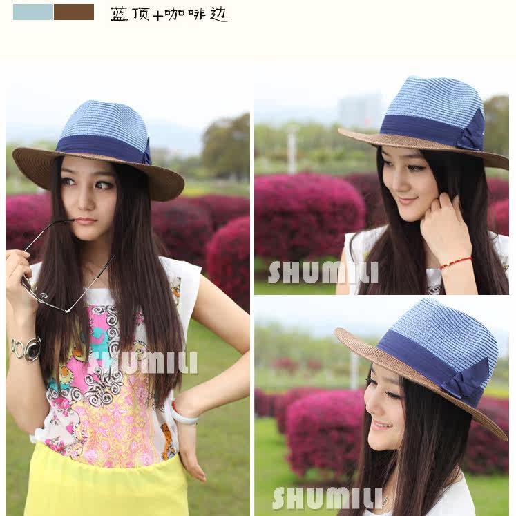 New Bow Tie Beach Hat Sunhat Children Leather Strap Butterfly Knot Summer Sun Grass Hat Woman Hat