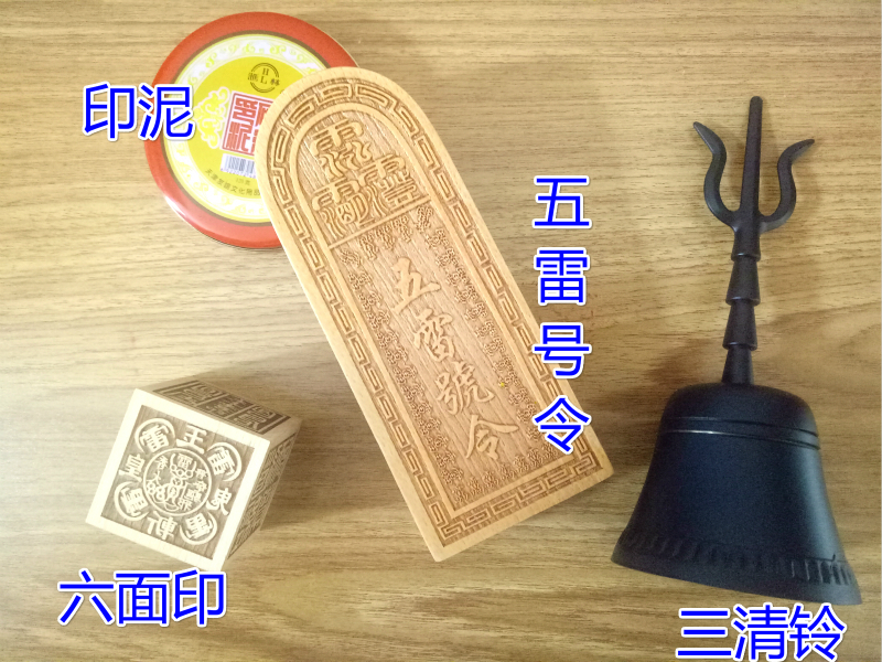 Taoist supplies four-piece set Three Qing Bell Taoist bell printing clay Peach wood six-sided printing Five thunder order