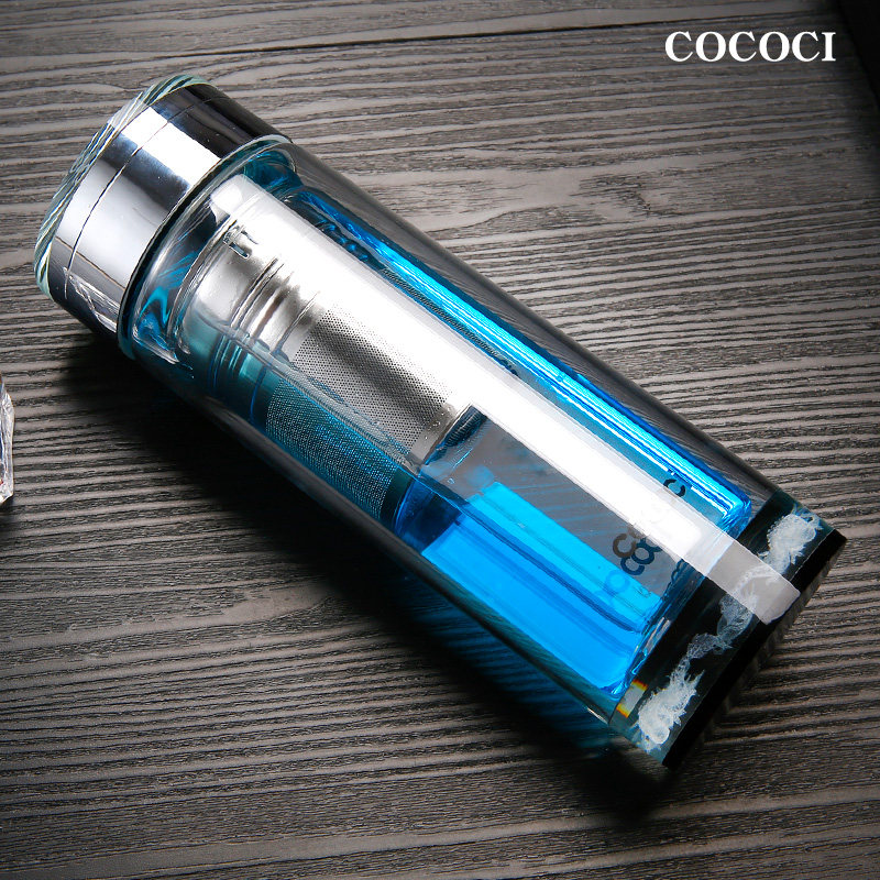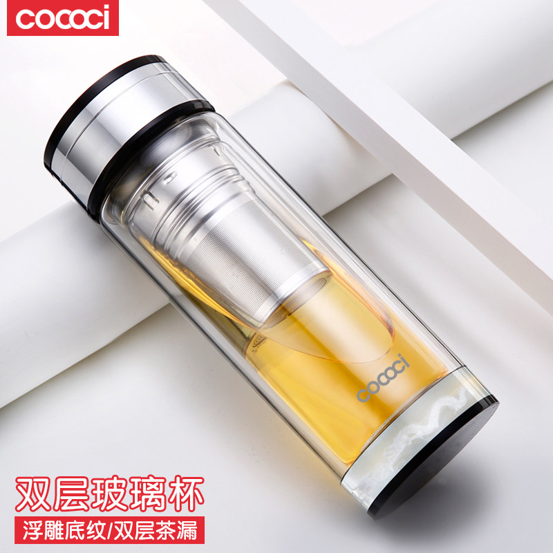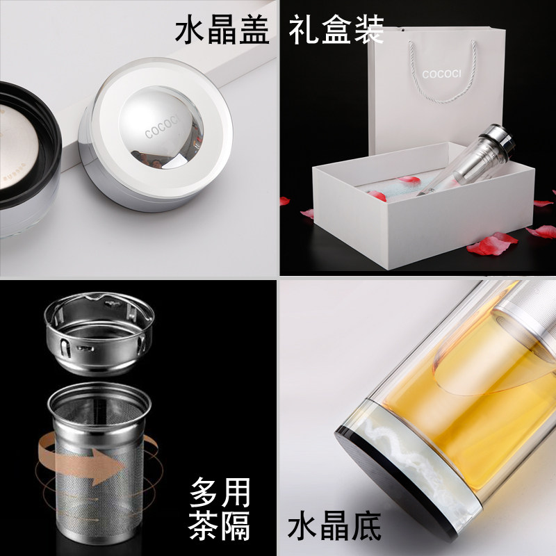 COCOCI Double glass cup men and women with handwater crystal cup portable home office water cup thermal insulation and anti-scalding