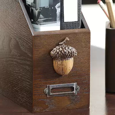 Retro style wooden desktop decoration storage box office student study paper book finishing box storage rack American