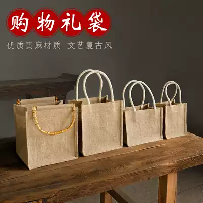 Small fresh hand bag with rice linen bag tote bag literary companion hand gift bag Simple gift bag custom printed logo