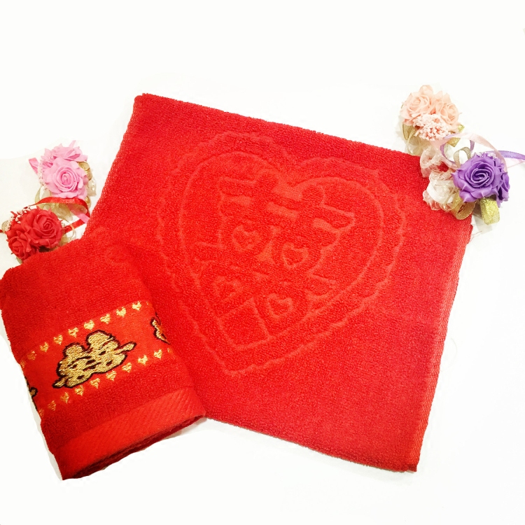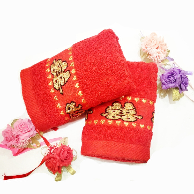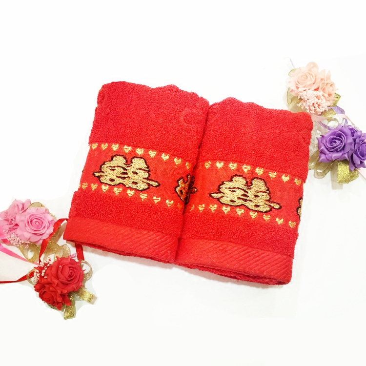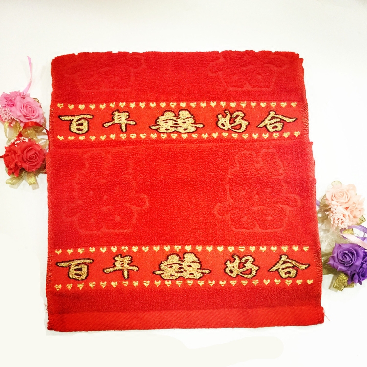 Wedding red-word towel wedding couple towel pure cotton wash face for a hundred years good face towel