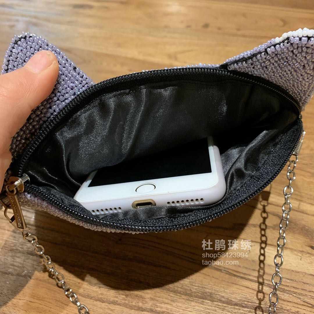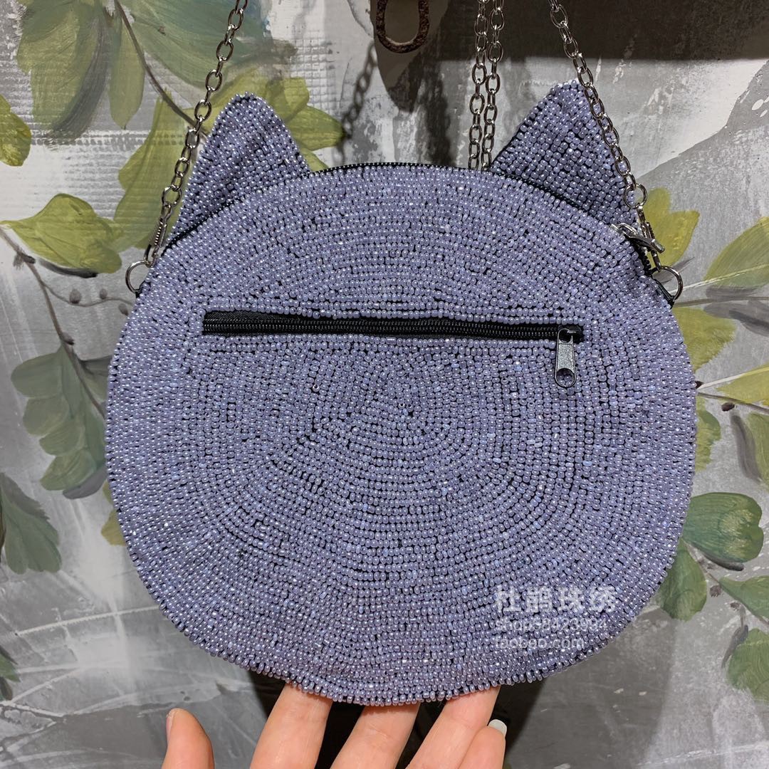 Rhododendron bead embroidery new product hand beaded original design gray cat cute cat star plus bag female shoulder messenger bag