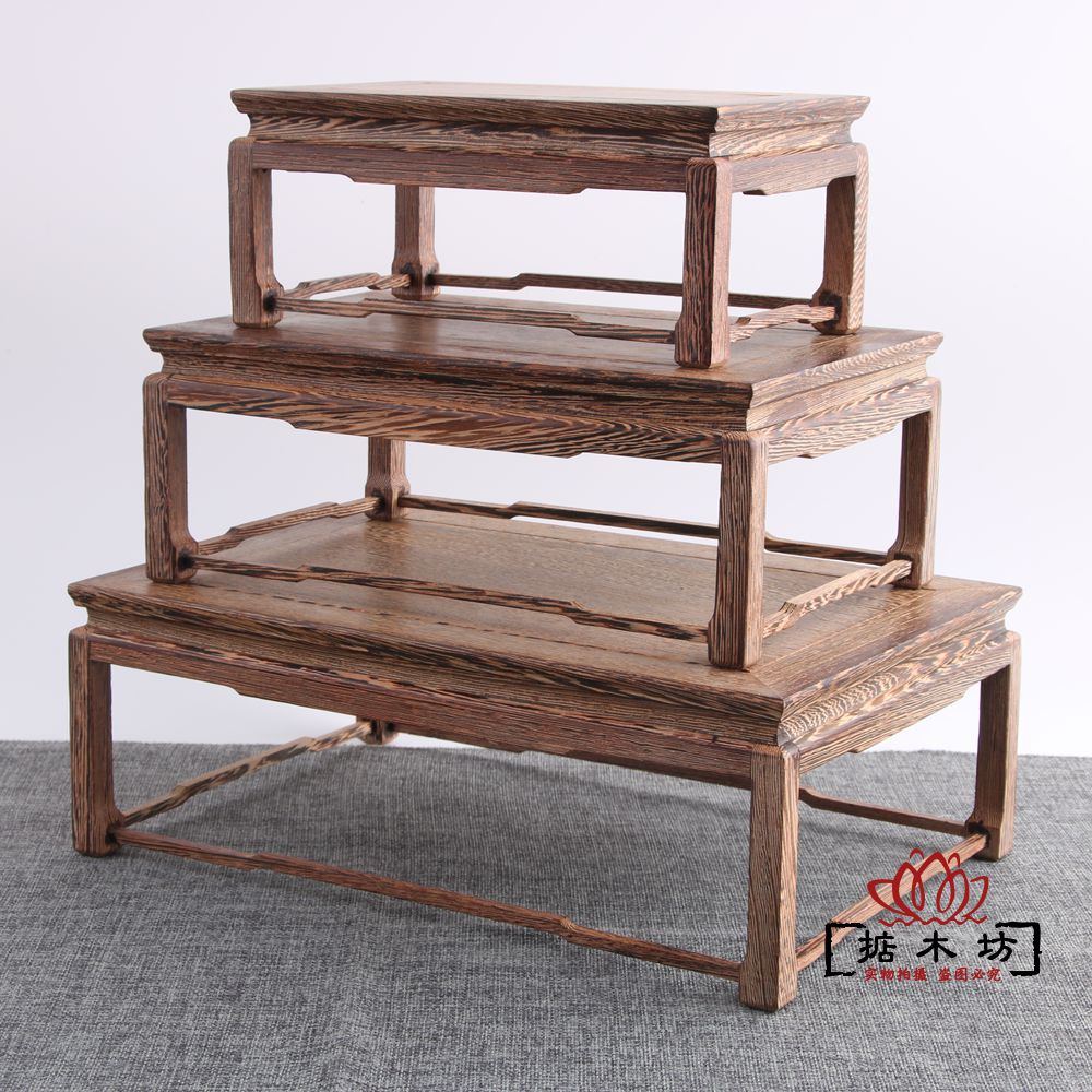 Mahogany carving Buddha statue base wenge wood square solid wood Tochi stone vase flower bonsai base ornament