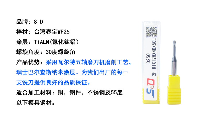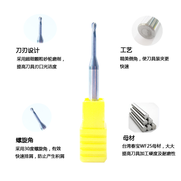 Tungsten steel ball head milling cutter long neck deep groove ball head knife R0 5R1R1 5 two-edge ball knife lengthened edge avoiding empty alloy knife