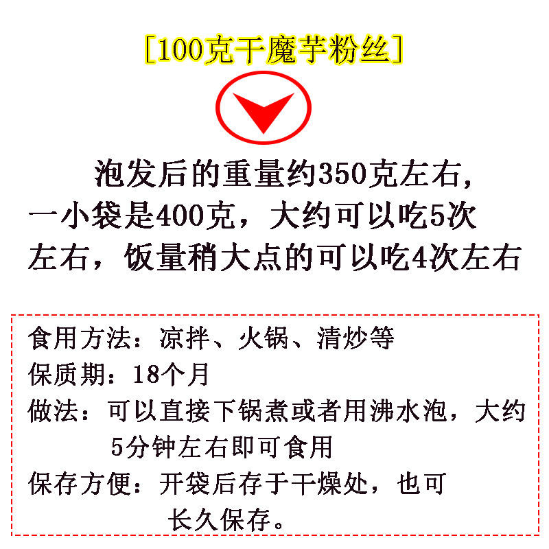400g * 2 bags (no seasoning) 400g * 3 bags (no sauce) 400g * 4 bags (including 1 pack of konjac hot and sour powder) 400g * 5 bags (no sauce