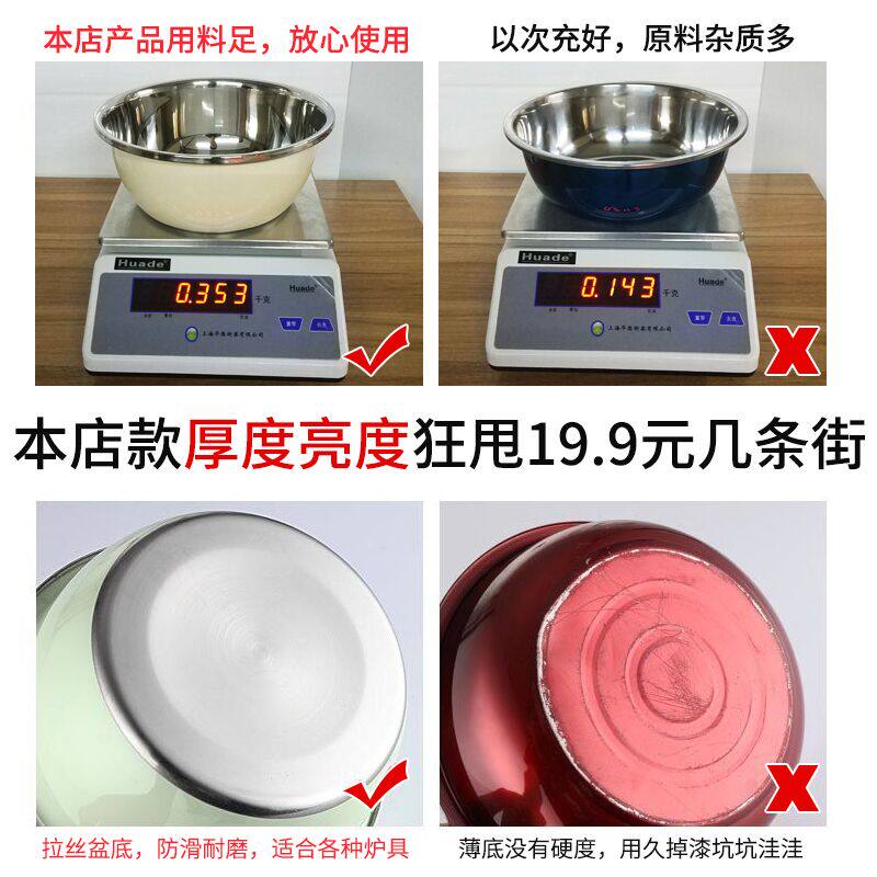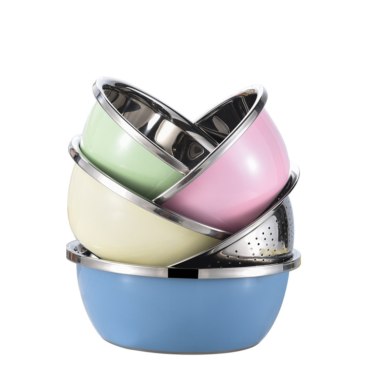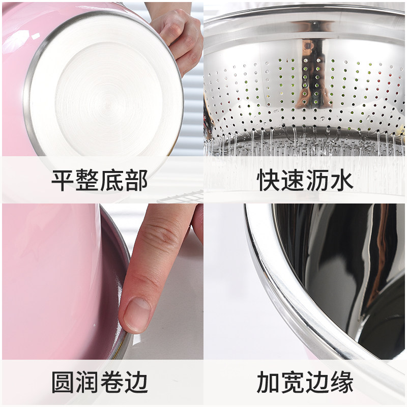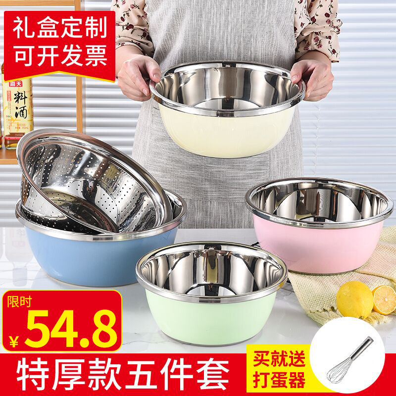 Color stainless steel basin washing raspberry household kitchen set round thickened small leakage soup beating egg and noodle drain basket