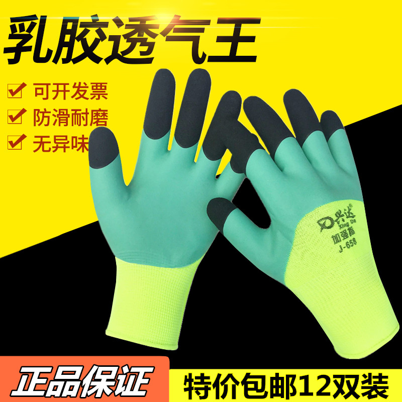 Xingda Sparkling King Latex Wrinkled Anti-Slip Working Gloves Lao Bao Bao Soaked Glue Thickened Wear and breathable reinforced finger plastic