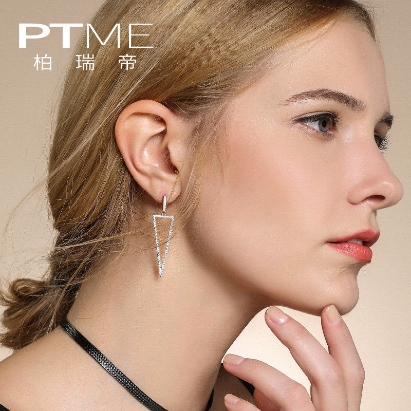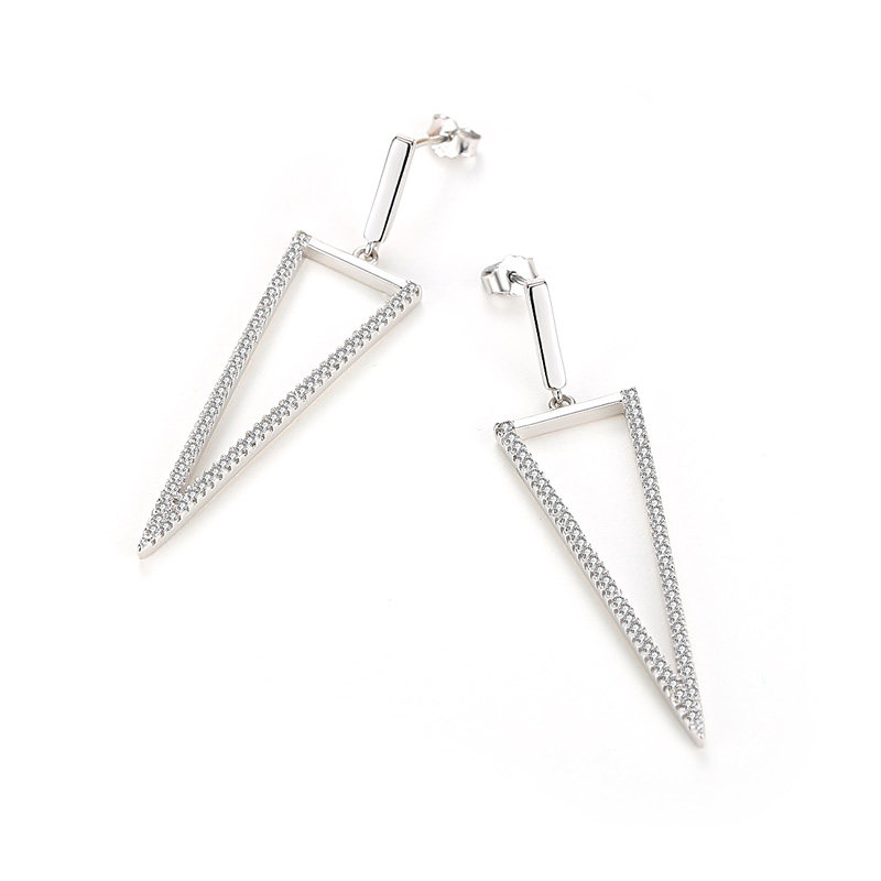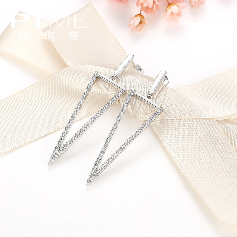 S925 silver earrings female earrings long version of net red cold wind Europe and America exaggerated personality Joker geometric triangle ear jewelry