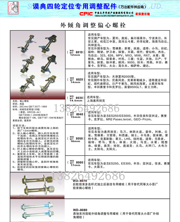 Benz Special Bolt 14mm (164 chassis) Front wheel Outer dip angle eccentric screw four-wheel positioning accessory Eating a tire