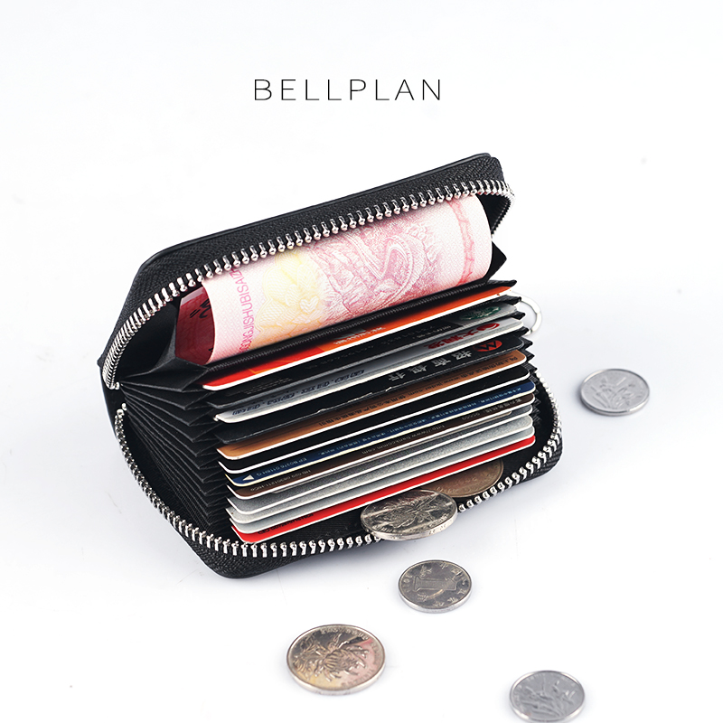 BELLPLAN Original Docard Bit Cross Cross Cow Leather Card Card Zipper Card