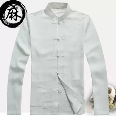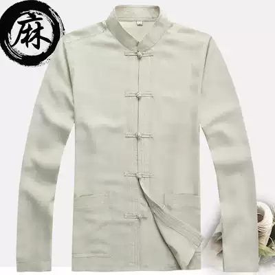 Spring and summer Tang suit men's shirt cotton and linen long sleeve coat grandfather linen Chinese style middle-aged and elderly father dress Hanfu