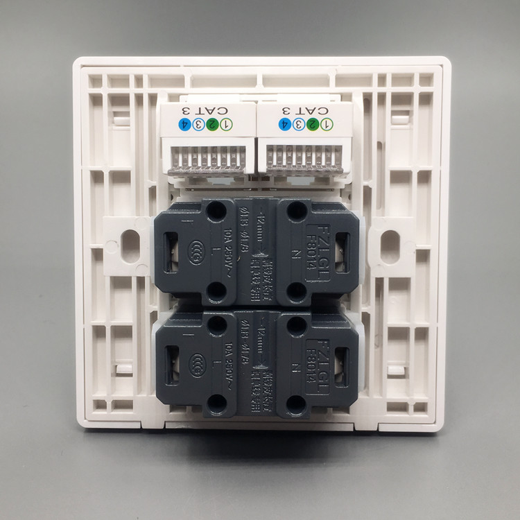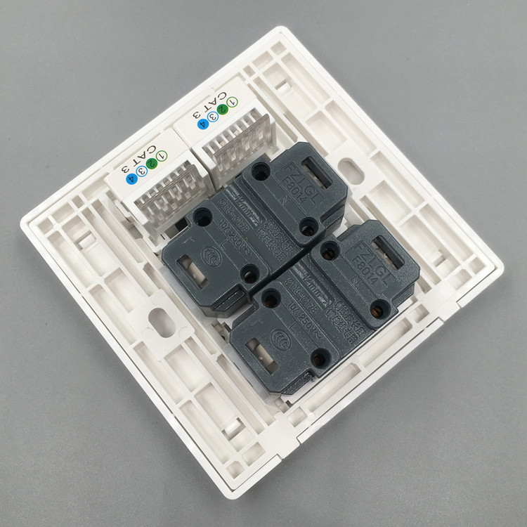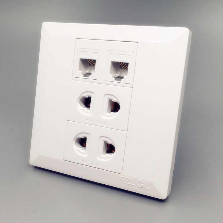 Double phone plus Four-hole power outlet Two-pair telephone connector with 4 holes 22 hole switch panel 86