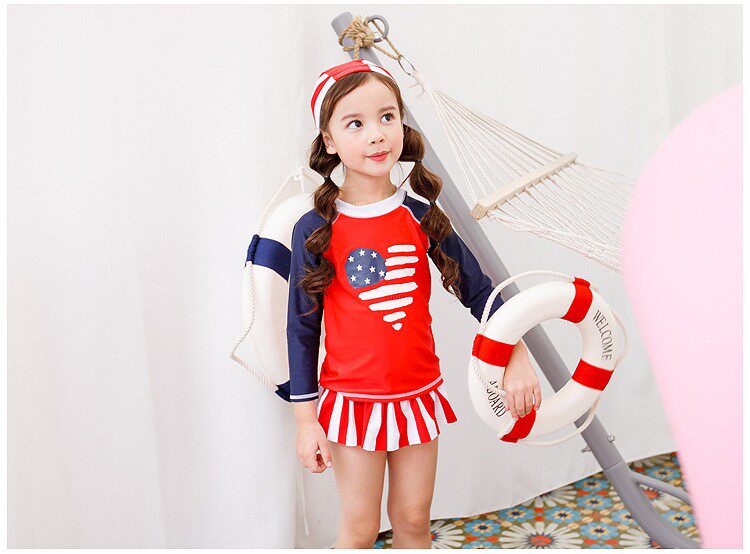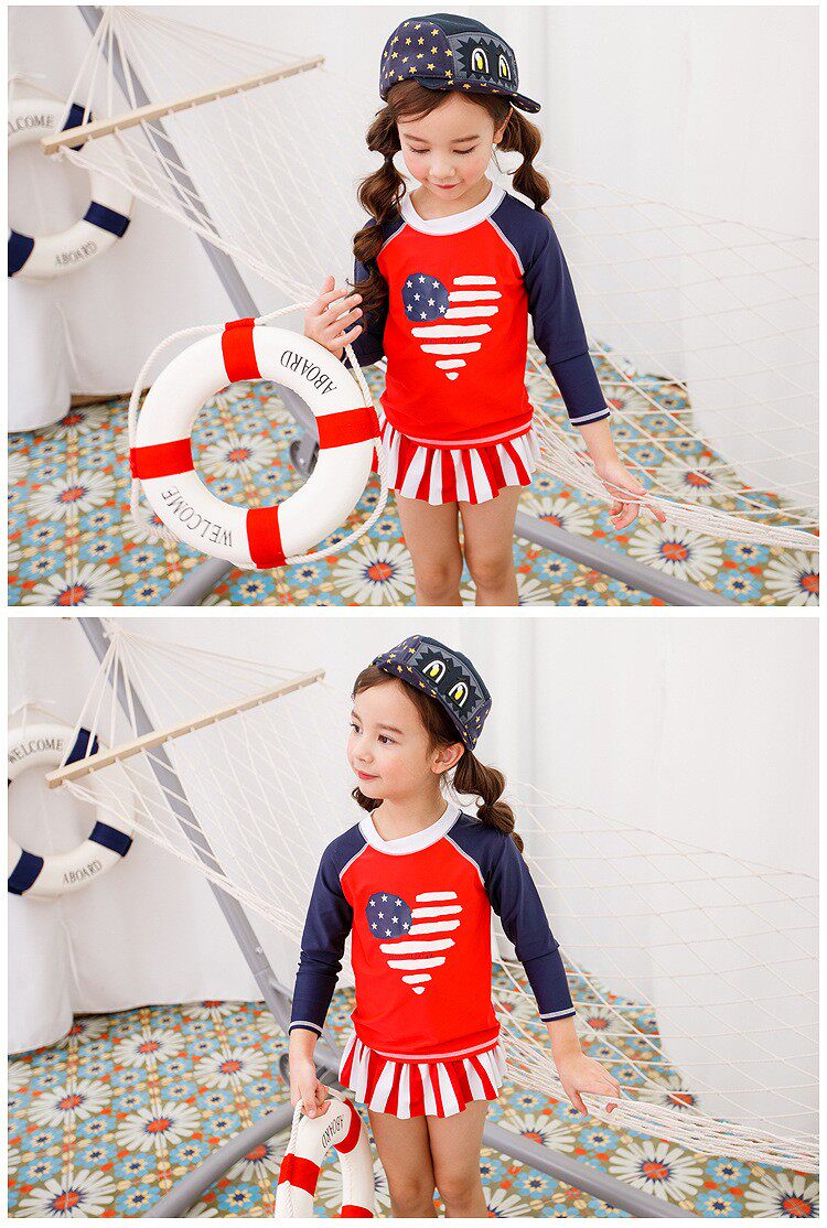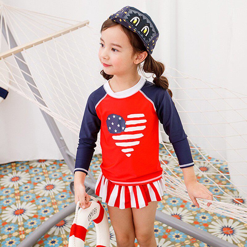 American children swimsuit export girls middle children sun protection anti UV long sleeves warm girls split skirt surf wear foreign trade