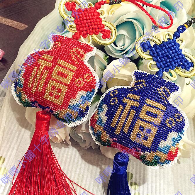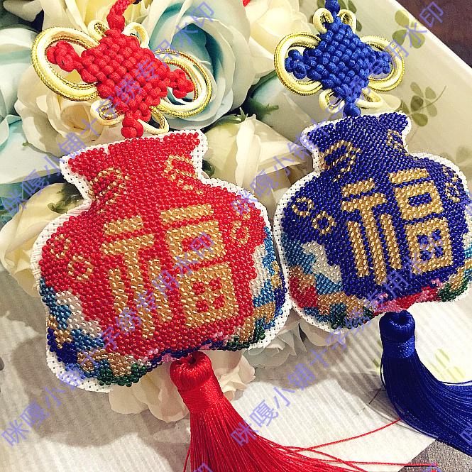 Beaded Miga cross-stitch car hanging three-dimensional embroidery big blessing bag precision printing material package 2 colors