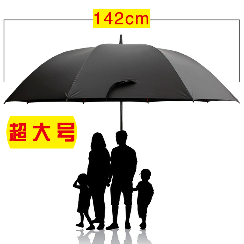 Super large size long handle heavy rain 3 people umbrella business increase double trio semiautomatic golf fine rain s umbrella ultra windproof