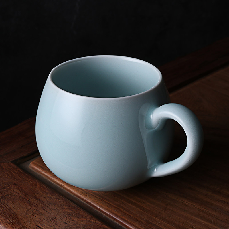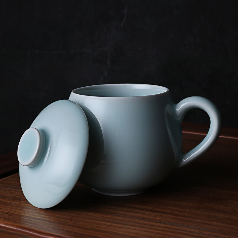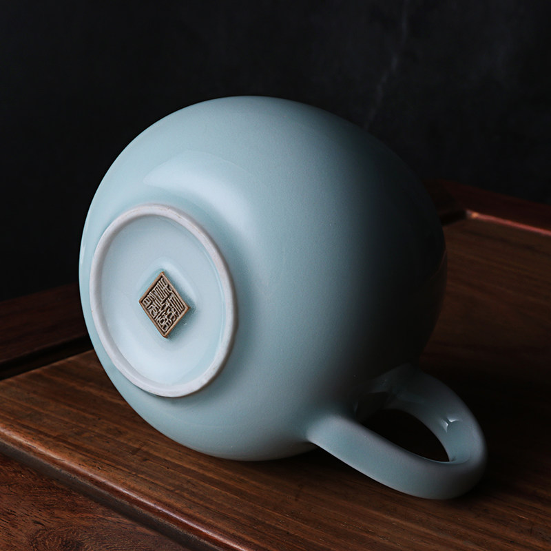 Upper Forest Lake Yue Kiln Green Porcelain Large Drum Single Cup Office Home Tea Cup Creative Ceramic Water Glass Gift Box Dress