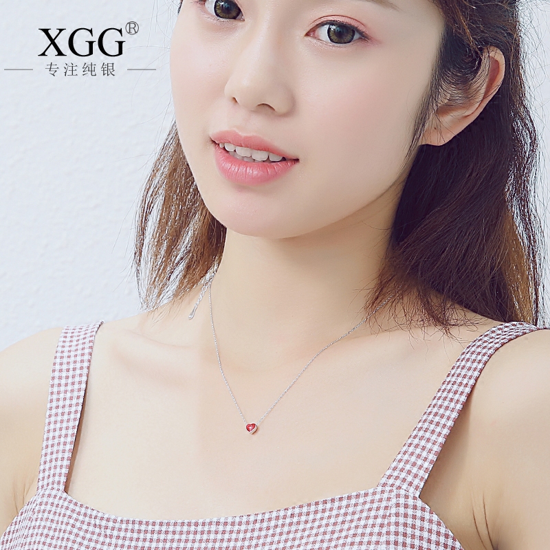 Fresh, sweet and cute little red heart love S925 sterling silver necklace female temperament red peach heart short collarbone chain summer
